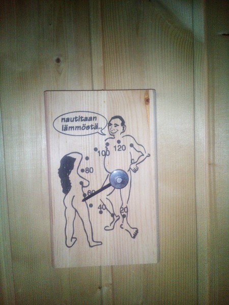 Saunan ohjeistus ja lämpömittari pitää olla kunnossa  ;)