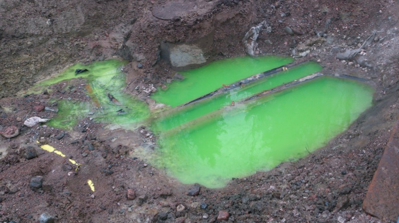 Kaukolämmön merkkiaine? Ääni tälle. Tietenkin riippuu onko putkistoja lähelläkään ja voi olla kyllä kuumaakin. Toi on kaukolämmön merkkiväriä!