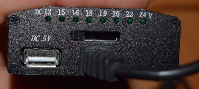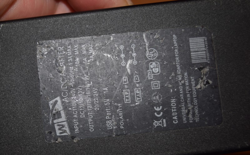 Siinä on läppäriin menevän johdon päässä vain liitin jossa kaksi reikää. Siihen on useita erikokoisia plugeja eri läppärimerkeille. Sen plugin voi laittaa molemminpäin eli sillä valitaan napaisuus oikein.