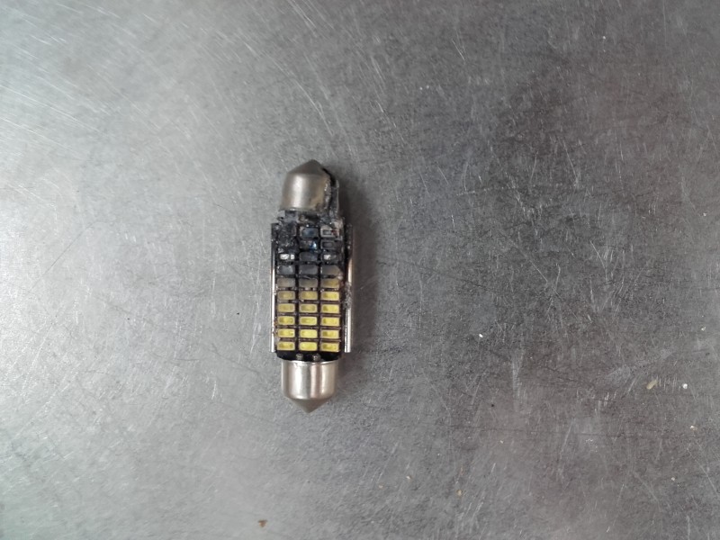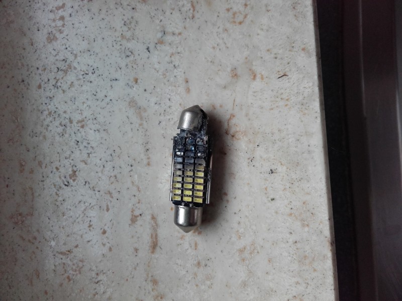 Minulla on vastavissa oloissa (auton rek. kilven valot) mennyt noita; 2 eri tapausta; molemmissa tuo smd-ledin piirilevy kärynnyt tai jokin lutikka siinä.. syyksi lasken, riittämätön kosteussuojaus. Ovat olleen juuri vastaavan näköisiä avoimia/suojaamattomia, jossa "vesipisara" tmv. aiheuttanut oikosulkua/lämpenemistä ja kuparin nousevat irti lasikuidusta..