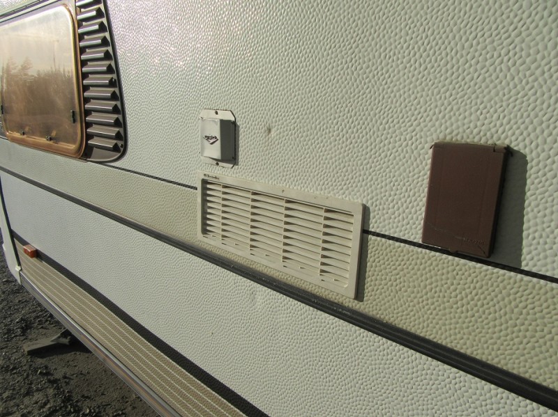 Päivä jatkui jääkaapin huoltoluukun asennuksella. Huoltoluukku oli sellaista mallia että siinä ei ollut reikää pakoputkea varten. En sitten arvannut ottaa alkuperäistä pakoputken pellihässäkkää pois ja vetää höyryjä tuohon muoviritilään. Tiä vaikka sulais tai palais koko moska ;D