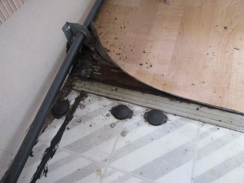 Ja sopii joten uretaani liimat levittelin irralla olevaan karmiin ja painoin karmin tilaansa. Puristimia ja laudan/lankunpätkiä vähän tukemaan