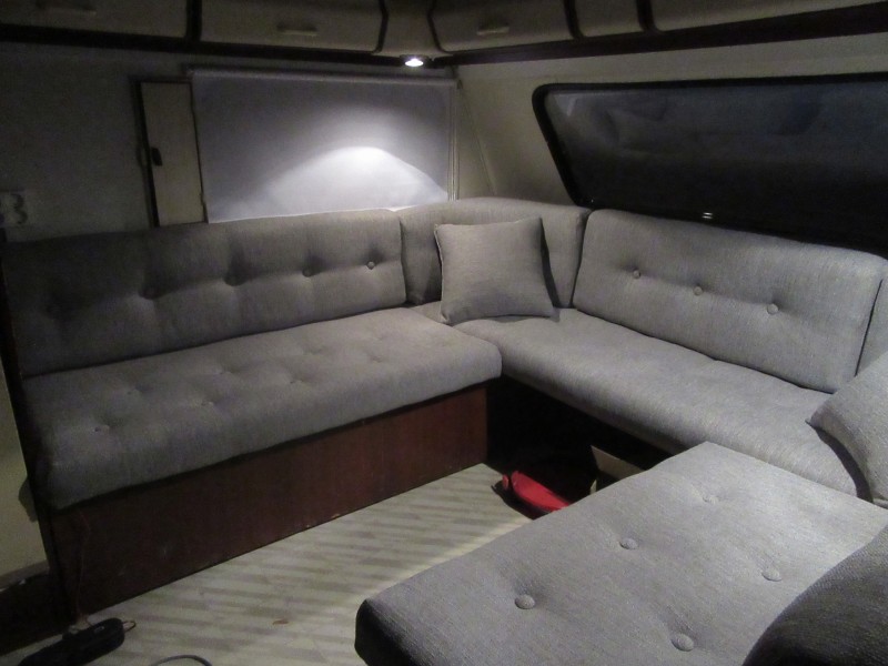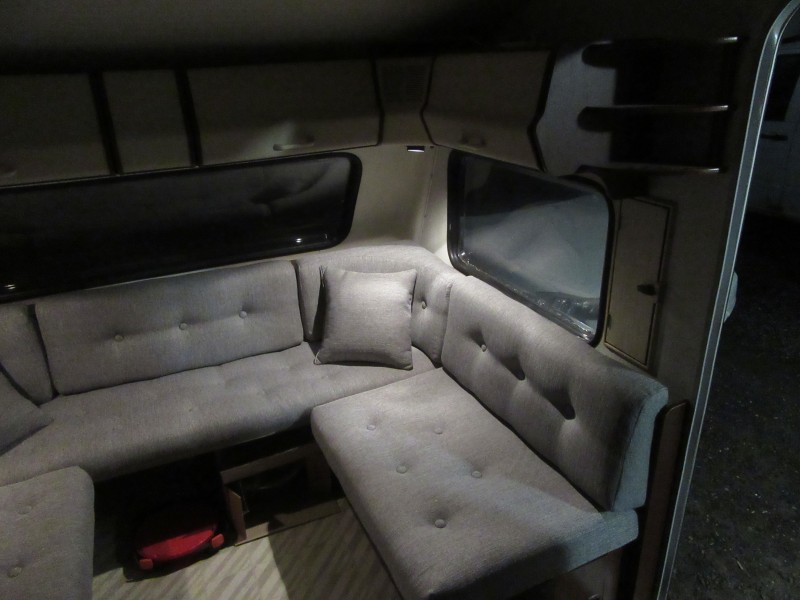 Samasta asiasta toinenkin kuva. Tässä näkyy myös takatilassa oleva sängyn runko, tulis vaan ne runkopatjat niin sais täryättää ne tuohon kiinni ja nakata sokkelilevn paikoilleen. Tarkkasilmäinen huomaa myös yövalojen muuttuneen paikan (tai itseasiassa vain tuo sivukaapin alla oleva lamppu on siirtynyt).