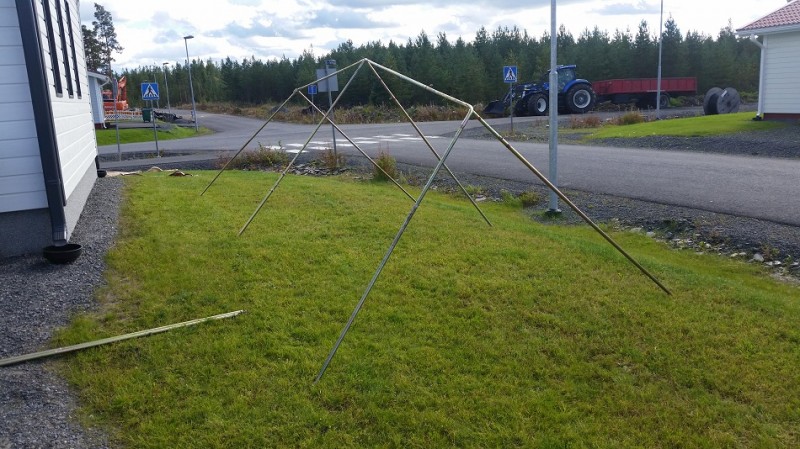 Mukana tuli pussillinen putkia joista kasasin tämännäköisen häkkyrän