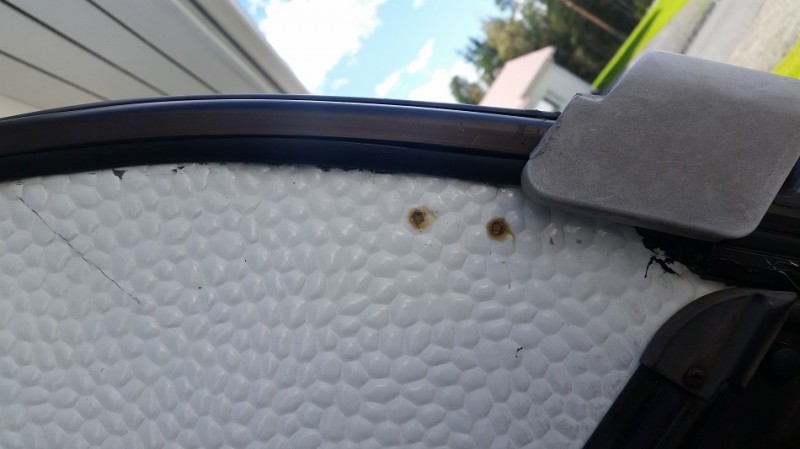Vaunun kyljessä noita telttakiinnikkeitä useampi, keskimmäinen keskimmäiseen mut nuo reunimmaiset niin noihin puuttuviin kohtiin vai seuraaviin mitkä löytyy? Pitää ostaa uusia nuota kiinnikkeitä, nyt reiät massalla vain ummessa