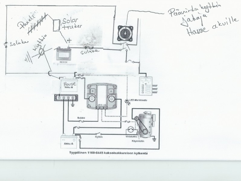 Auringopanelille on laitettu nyt  agm 120a  .    Starttiakku  80A (happo)  toi toinen asuntopuolen lataus ohjattu  kaksoisakkurelellä  120a (happo) ajattelin toteuttaa näin.  "Joku sanoi minulle joskus ettei agm ja happoakku ei olisi hyvä sotkea samaan lataukseen(kommenti lisätty 2404169)"
