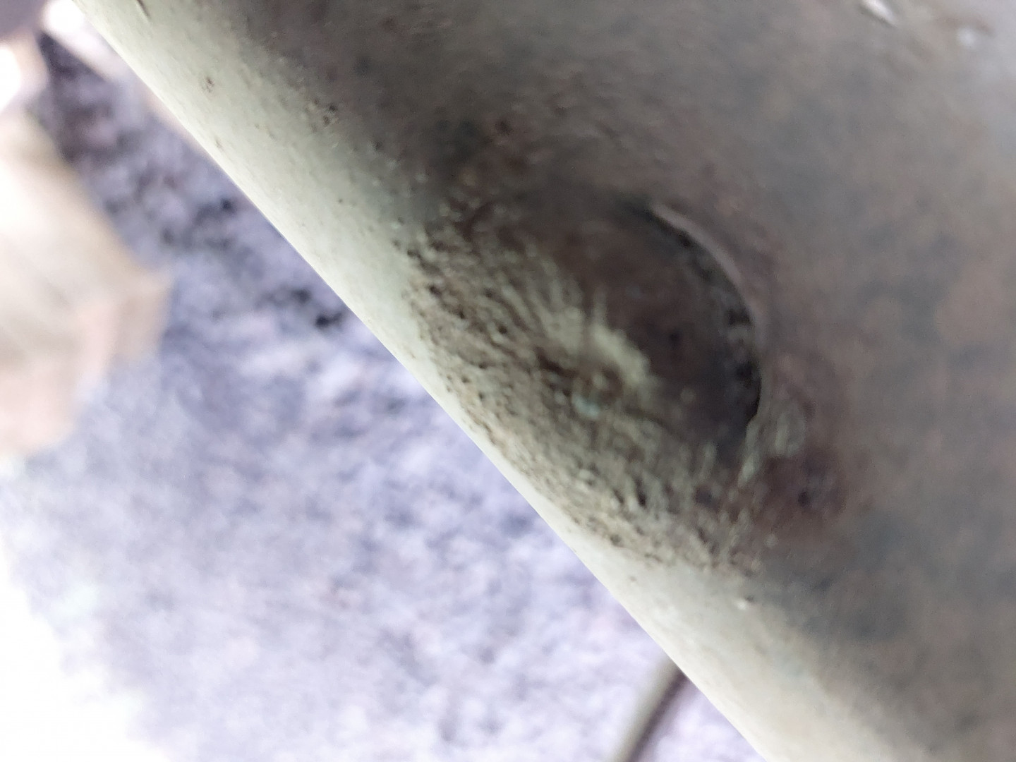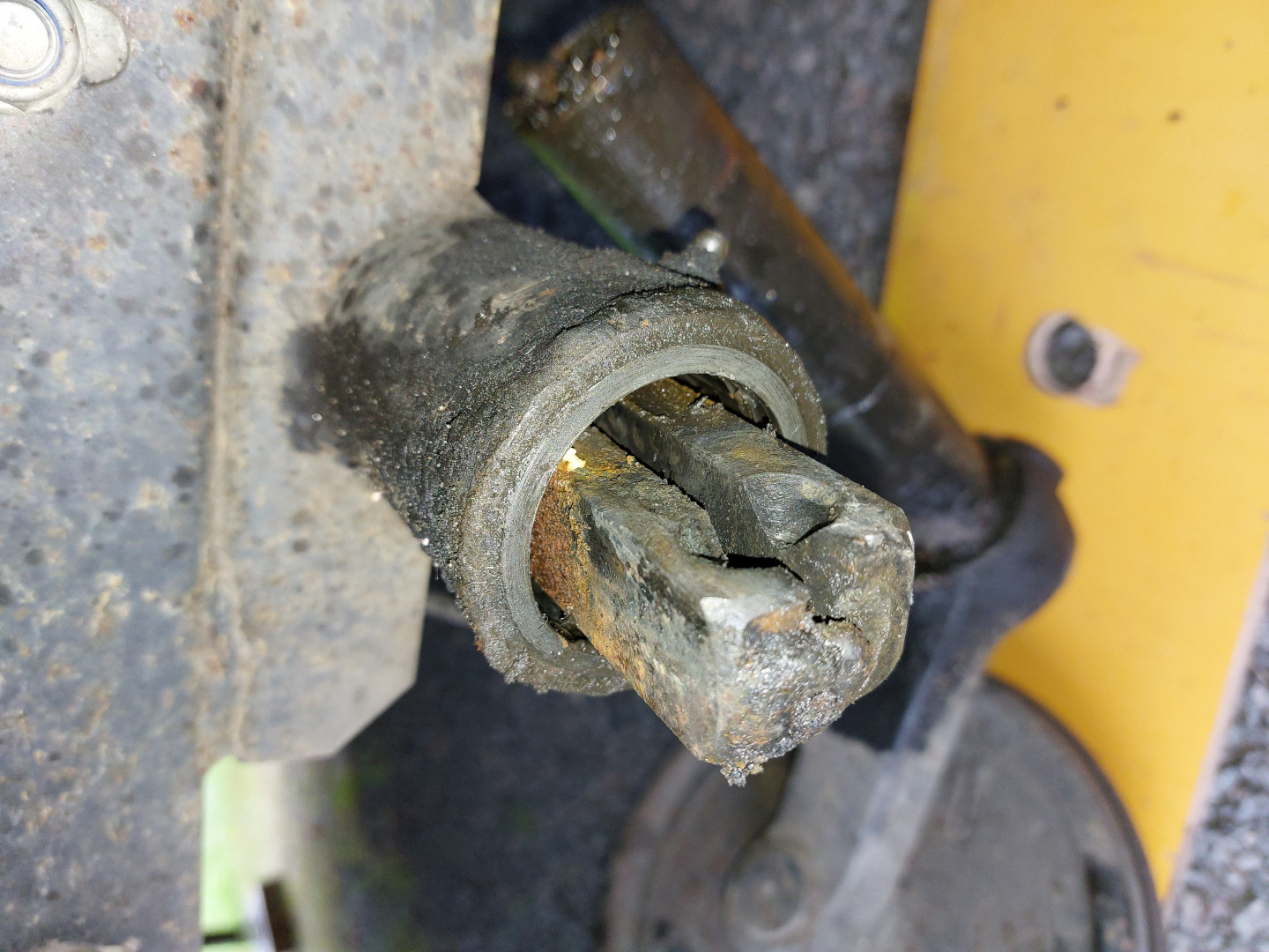 Ihan niinkuin akselissa oleva hitsaus jolla on se tanko kiinni, olisi revennyt etureunasta kun on selvä reikä?
