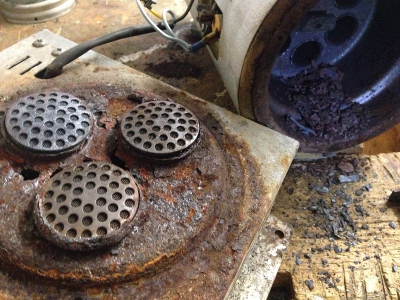 No tuolle ei kannata tehdä mitään, arinaverkot, kaasuventtiili, putkisto talteen.