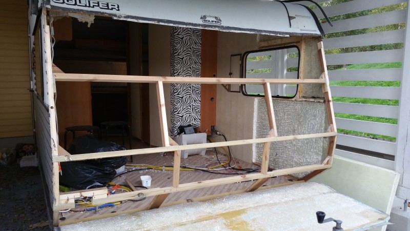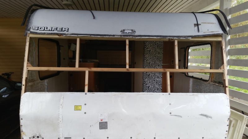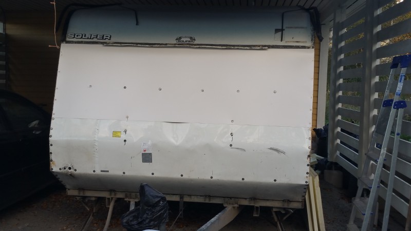 Täytyisi yrittää ens viikolla hakea uutta peltiä, saan peitettyä etuosan. Täytyy samalla miettiä, millaiset kulmalistat asennan. Tai mitä yleensäkään on tarjolla.