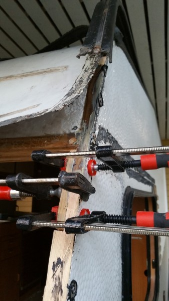 Uudet runkokaaret asennettu paikoilleen, väliin asennusliina ja ruuveilla kiinni. Yllättävän aikaa vievää hommaa.