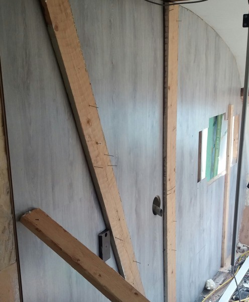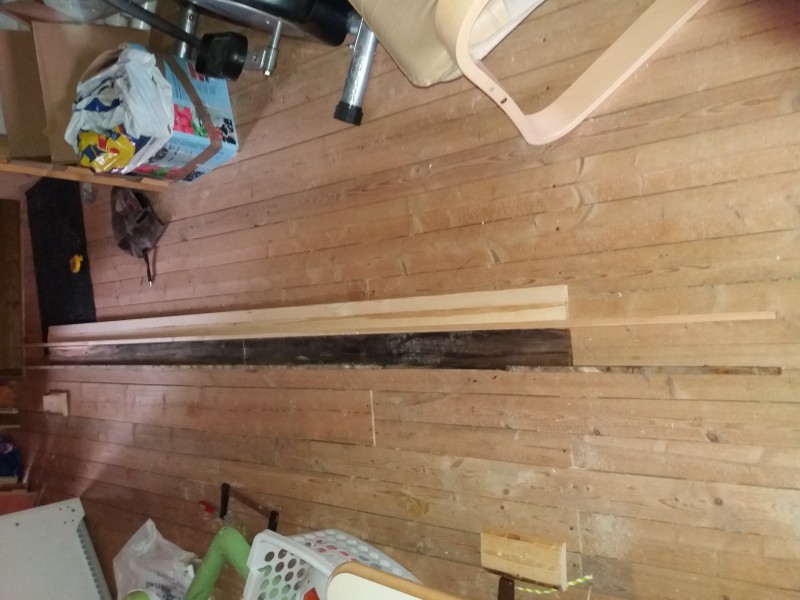 Keskeltä oli kovaa ja kuivaa. Seinässä kulkevan tukiriman joudun vaihtamaan kokonaan. Puran enempi kunhan ensin löydän aikaa ja rahaa vasemman seinän levytykseen Thumb.
