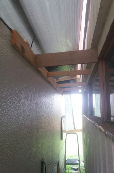 Katto on vielä irti, koko katon vaihto vielä mahdollinen niin en ole sitä sen kummemmin fiksaillut. Ikkunatiiviste on vain nostettu "hollile", ihan hyvin meni vaikka seinän paksuus muuttui 2-3mm.