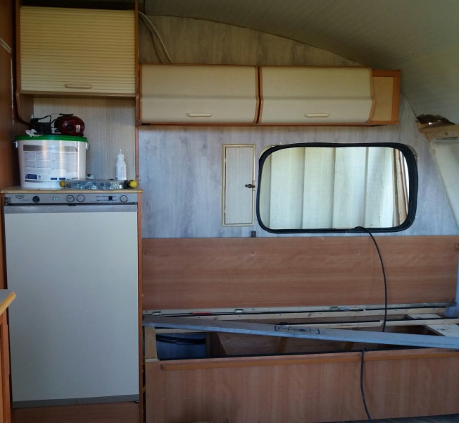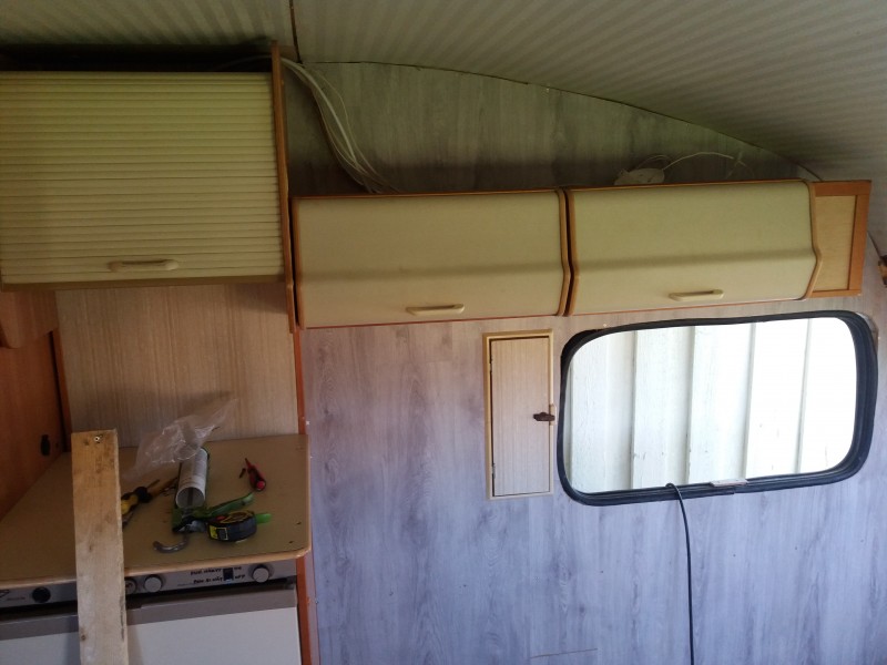 Eipä siinä mitään ihmeellistä ollut. Saas nähdä miltä se vaunun seinä näyttää vuoden päästä :o. Lisäksi laitoin ylä-/alareunaan ja vaakariman kohdista ruuvilla laminaatit kiinni (jäävät piiloon katseilta).