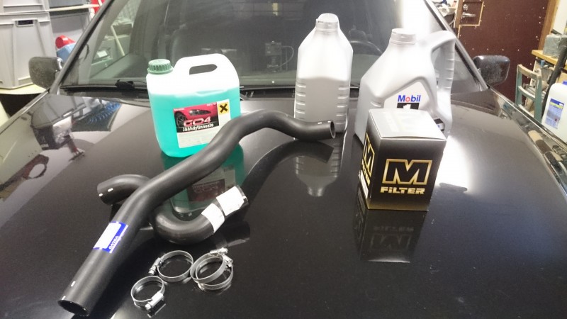 Volvo V70 hukannut taas pakkasnestettä, alkuviikosta sitten tutkin hiukan konepellin alle niin eikös ylävesiletkusta lemmarinjuuresta suihkautti pakkasnestettä kun taivutin letkua. Mistäs sitä muualta letkuja kuin siniseltä, eikä sielläkään enää rippikouluiän ohittaneeseen löytynyt. Tilaukseen ruotsista asti. Tänään tulivat, loppumatkan linja-autolla. Samalla öljynvaihto vaikkei kilometrit vielä aivan tapissa olleetkaan, koska samalla kun poistaa alasuojat niin hoituu öäljynvaihtokin. Mittarissa 447 tkm, että kyllähän nuo letkut jo kilometrejä olivat nähneetkin. Yllättävän pieni on pakkasnesteen määrä volvossa.