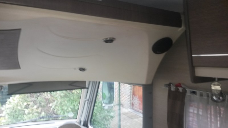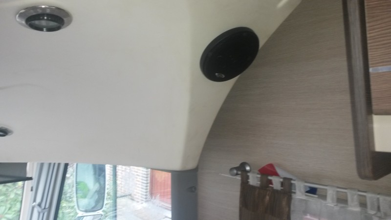 Nyt on kaijuttimet lisätty eli yhteemsä neljä on. Kaksi edessä kojetaulun päällä ja nämä uudet etusängän takalaidassa.