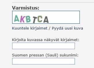 Täällä näyttää olevan käytössä edellä mainitsemani varmistus, että rekisteröitymätön kirjoittaja joutuu todistamaan olevansa ihminen eikä robotti täyttämällä oheisessa kuvassa näkyvät kentät