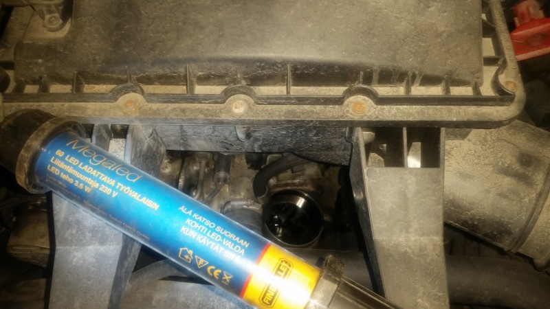 Tässävaiheessa kun öljyt vielä valuu astiaan niin kuskinpuolelta moottoria polttoainesuodattim