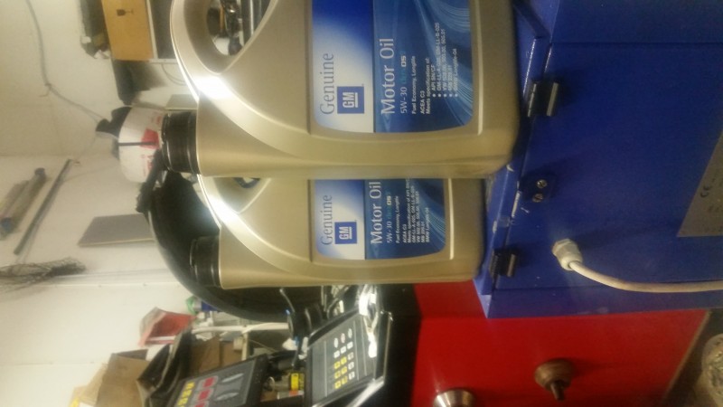 Tässä 2.2 litraisessa koneessa öljyä on noin 11l joten piti varata 3kpl 5l kannuja
