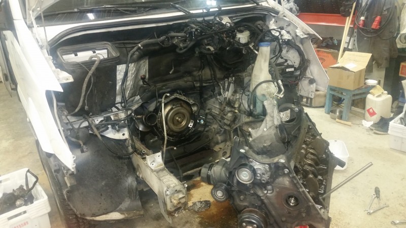 Kustannukset tällähetkellä noin 3000e.  Uutta tuli:laakerit kaikki, männänrenkaat, täydellinen tiivistesarja, hehkut, vesipumppu, öljypumppu, öljynlauhdutin, automaatilaatikon öljyputket (oli helppo vaihtaa nyt kun kone oli pois vanhat oli ihan mädät), kannenpultit, alakerran pultit, jakopää täydellinen.