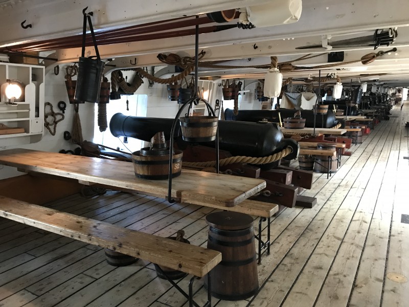 Yleensä nuo laivat tuppaavat olemaan pelkkiä kuoria, kuten Suomen Joutsenkin valitettavasti, mutta yksi viimeisistä laivaston purjelaivoista HMS Warrior (1860) oli aseita myöten lähes täysin varustettu. Samoin Nelsonin Victory.