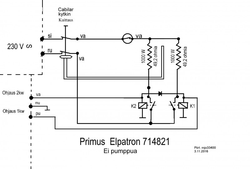 Iltojen iltaa Otalammelle ja kiitoksia veikkauksestasi, vika oli tosiaan yhdessä liitännässä...(ei abiko) Lattialla on kaksi sulaketta, mitkä oli kunnossa....sit oli se laatikko edessä vasemmalla, mut en avannut sitä... sit oikealla oli niitä johtoja iso nippu sokeripala pötkössä ja kaikki hyvin... No sit kuulemma Hobbyn erikoisuus IKKUNAKYTKIN etulasissa (sitä jo kerran aiemmin kopasin ja ajatteilin oliko joku viritellyt murtohälyä...se oli ok, mutta, mutta sitten hokasin, et oli toinenkin ikkunakytkin oik. sivulasissa ja SIINÄ OLI JOHTO LÖYSÄLLÄ RUUVIN ALLA, kiristin ruuvin ja toisenkin ja silloin kuului pannulta napsauksia ja poks, pannu oli tulilla! Kaikki hyvin, kun loppu hyvin! Hyv`yöt! Terveisin Repe