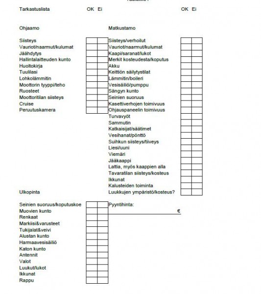 Ennen kauppaan menoa tee tarkastuslista tutkittavista asioista. Autokuumeessa saattaa jäädä kopin tarkastus pelkkään sisustuksen ihasteluun. Ohessa oma lista.