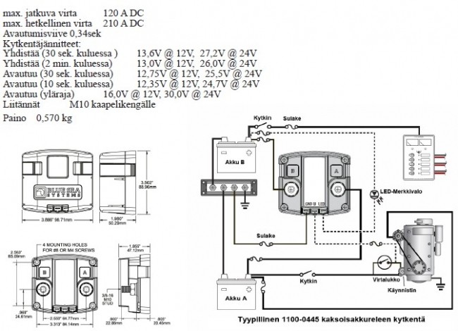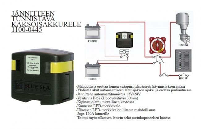 Suosittelisin pidättäytymään käytössä hyväksi todetuissa komponenteista jos on kyse vene tai auto sähkölaitteissa.Täs sä yksi kaava kaksoisakkurele 12v
