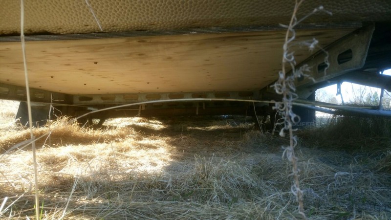 Tuo lattia on tehty selvästi jälkikäteen ilmeisesti tukemaan alla olevaa lahoa lattiaa. Alkuperäinen lattiavaneri on musta väriltään.