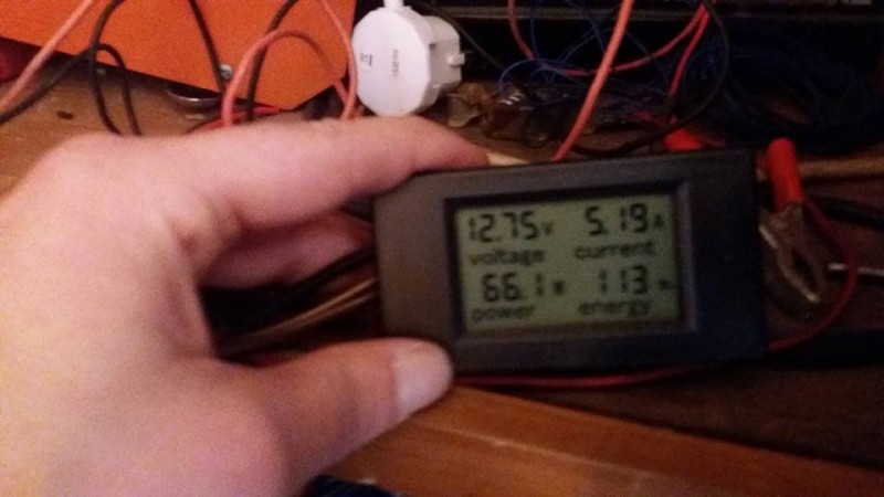 Tuossa mitä mittari näyttää on muutamat hehkulamput ja muutamat ledit ja autoradio sekä lämmitys (Primus 2470)
