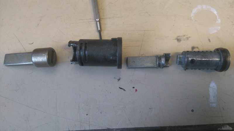 Purin lukon kokonaan ja lukkosylinteri onkin ehjä, mutta tuo sylinterin päähän tuleva osa on rikki. Myös tuo musta holkki, jonka sisään sylinteri laitetaan on hieman vääntynyt.