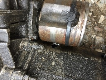 Tapahtuman kulku alkaa olla selvillä kuten lentoturmatutkinta -ohjelmassa. Aloittajan puolesta tietysti harmittaa, ettei hän heti kun huomasi vaihdekepin tehottomuuden tarkistanut asiaa konepellin alta. Viitosen olisi saanut pois päältä vääntämällä vaihteiston valitsintankoa ruuvinreijästä vaikka lyhyellä ruuvimeisselillä. Aloituksessa sanotaan, että rilinä alkoi kuulua vasta aivan loppumatkasta, mikä viittaa, että osat putosivat vasta silloin, joten pahempi vika olisi ollut vältettävissä.  Reikä vaikuttaa kuvan perusteella olevan kutakuinkin vaihteiston öljypinnan normaalitsolla, joten aivan kuiva laatikko ei ole ollut eikä kovin pitkää matkaa, mutta valualumiinikokkare et ovat ilmeisesti painuneet vauriosta laatikon sisään.  Alumiini ei välttämättä teräsrattaille aiheuta vaurioita.