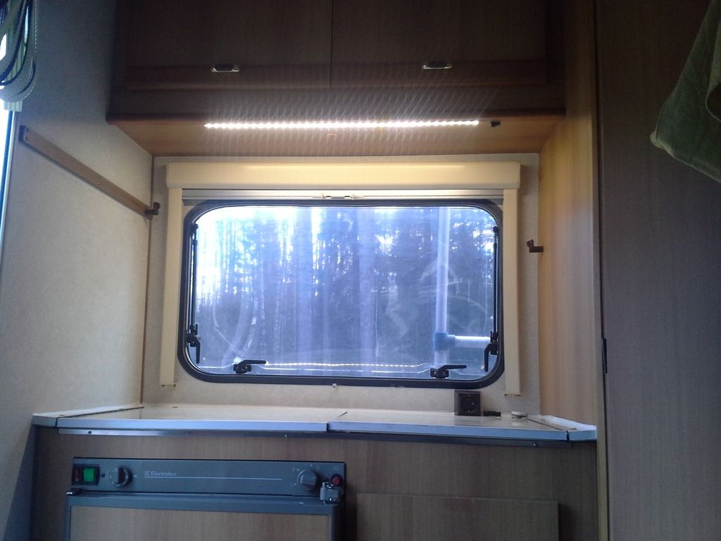 Tuli viikonloppuna testattua ja mittailtua 12V ja 230V sähköjärjestelmä ja kaikki on kunnossa. Kaasulaitteet tuli kaikki testattua et toimii, jääkappi syttyi aika nopeasti, mut liekki pätki. Nopea purku takaa ja palopesään varovasti puhaltaen ja taas toimii, (tämän palopesä hässäkän uusein kokonaan syksyllä 2015 ja puhdistin pakoputken.) Kaikki siis toimii ja nyt olisi vaan enään raitisvesisäiliön puhdistus ja mahdollisesti täyttö ja sinne säilöntäaine joka pitää veden puhtaana (me ei tätä juoda, pestään kätemme, ruuan ja kahvin laitossa (kun vesi keitetään) ja tottakai vessan vetämiseen  ) Pyttyyn tuli kans heitettyä siniset veden kanssa.  Tuo wc.kin on lähinnä puskaparkissa lapsien ja vaimon käytössä. Vähän rätillä sisäpinnat talvenpölyistä pois ja viimeinen imurointi niin reissut kutsuu  Vaimon 3-vuorotyön takia kesän ekat reissut venynyt kohtuuttomasti