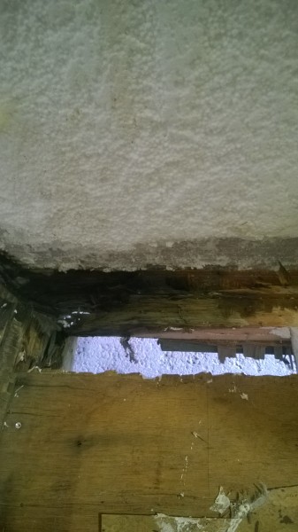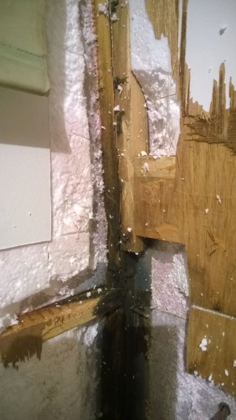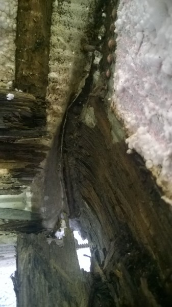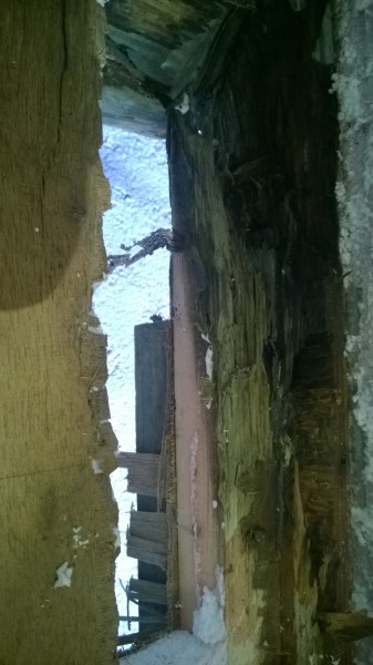 löytyy jopa tervettä puutakin tosin on kostean tuntunen, saas nyt sitten nähä josko purkis kattoon asti levyt pois takaseinästä ja tekis uudet puut kokonaan takaseinäänkin.