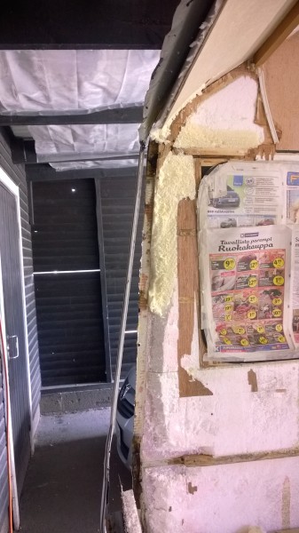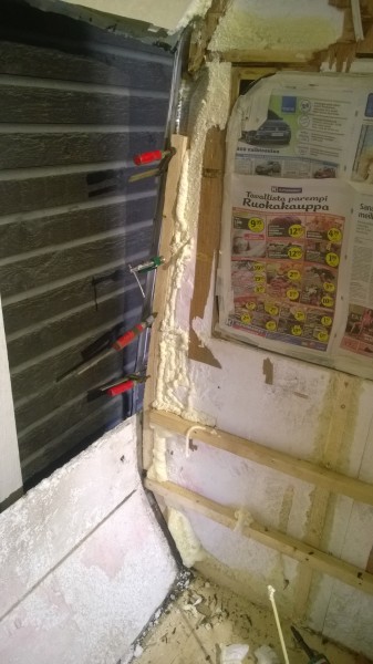 siellä lepää verestä alajuoksua, samoten seinästä otin alumiini palat pois ja panin puuta tilalle, jotain kait nuihinkin kiinni tulee