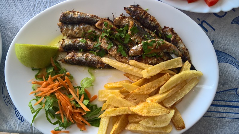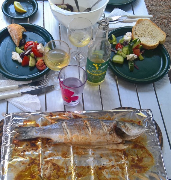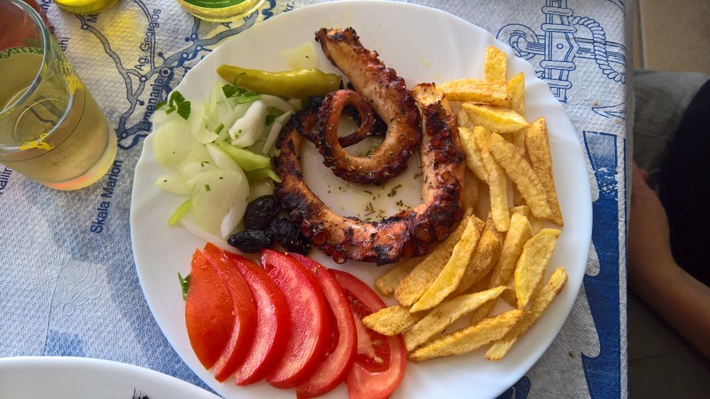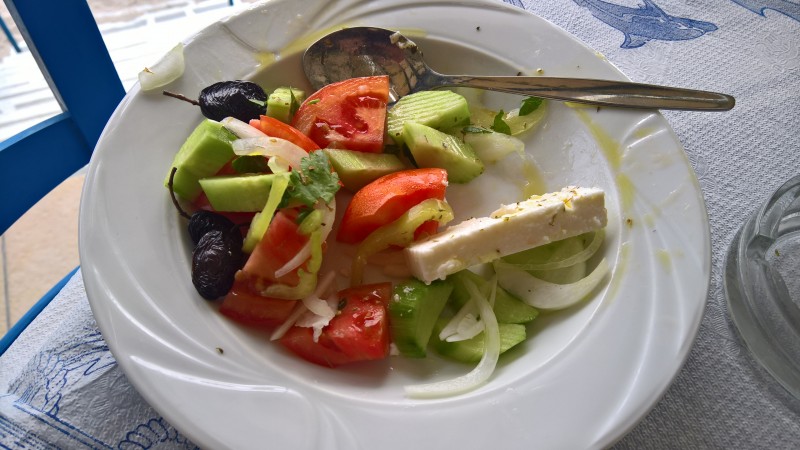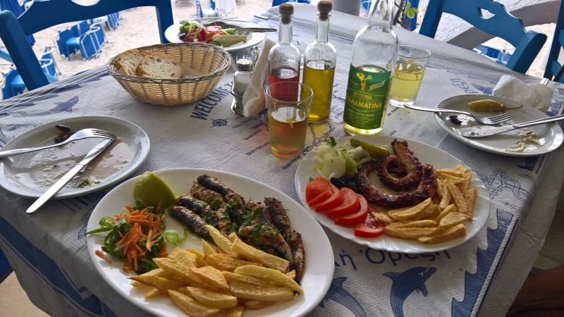 Sitten syömään, salaattia, retsinaa , grillattua mustekalaa, sardiineja grillistä myös ja sirtaki soi.