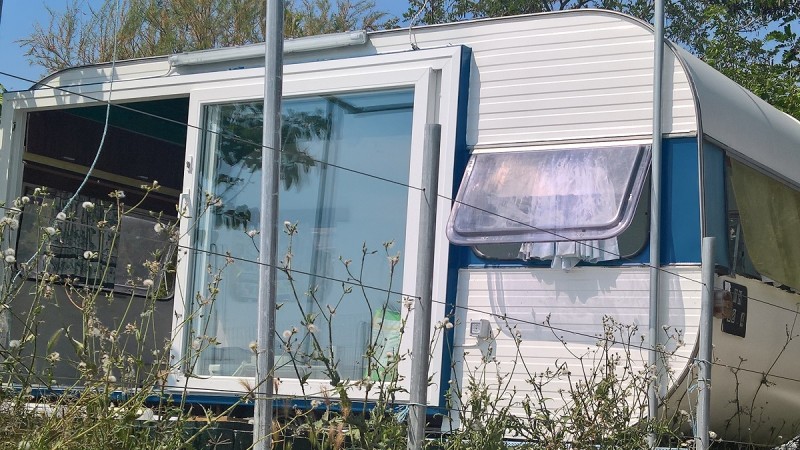 Tänne tehty vanhoista vaunuista hauskoja rantabungaloveja vaunuttomille. ;)
