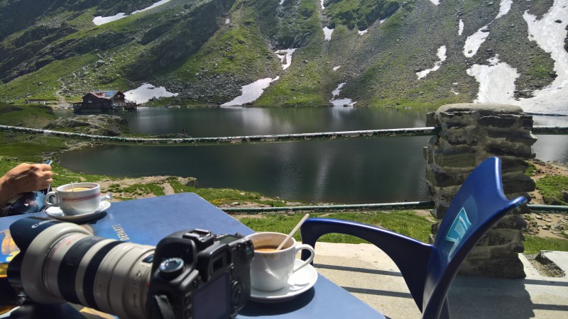 Yläasemalla oli kojuja, kahvilaa , majataloja sekä Balea du Lac eli järvi mikä muodostuu lumien sulamisesta.