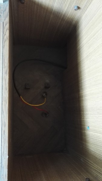 Kuva jossa on laturi, sen vasemmalla puolella lattiassa on vaunun ainoat kaksi sulaketta, tarkista ne ensin.