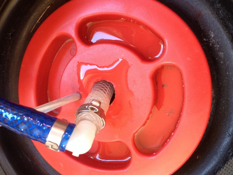 Miten teillä on ratkaistu letkun läpivienti raikasvesisäiliöön? Minulla läpivienti on kuvan mukainen ja kun täytän säiliön, niin ainakin ajossa tuosta läpiviennistä loiskunee vesi pihalle.