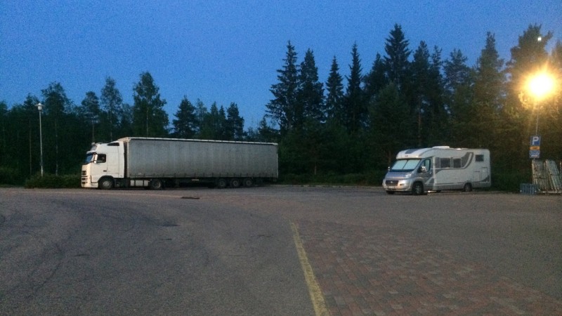 Keskiyön hämärässä saavuimme Jyväskylän ABC Keljonkankaalle, hämärä vaihtunu....