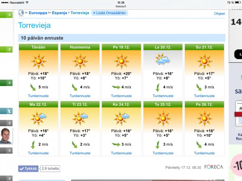 Perjantaina lennähdetään Alicanteen. Siellä odottaa autovuokraamon auto, jolla jatketaan Orihuela Costaan joulu- ja talvilomalle.  :)