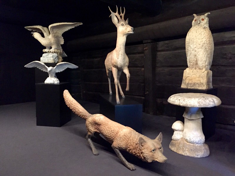 Ja tässä se on nyt, näyttelytilassa piharakennuksen alakerran väentuvassa. Entisöitynä. En muista nähneeni kopiota missään ulkona, muita siellä kyllä oli.