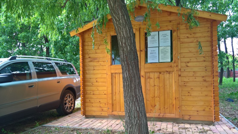 Tulevana pe tuo saa vielä "terassinsa", kun teltan sisäpuolelle ruuvataan muovisista kuormalavoista ja OSB-levyistä lattia. Viime kesänä kun tuo nurmikko vettyi kovempien sateiden aikaan melko pahasti, niin noin saa nyt kunnon kovan lattian ja irti maasta, pysymään paikat kuivina Thumb