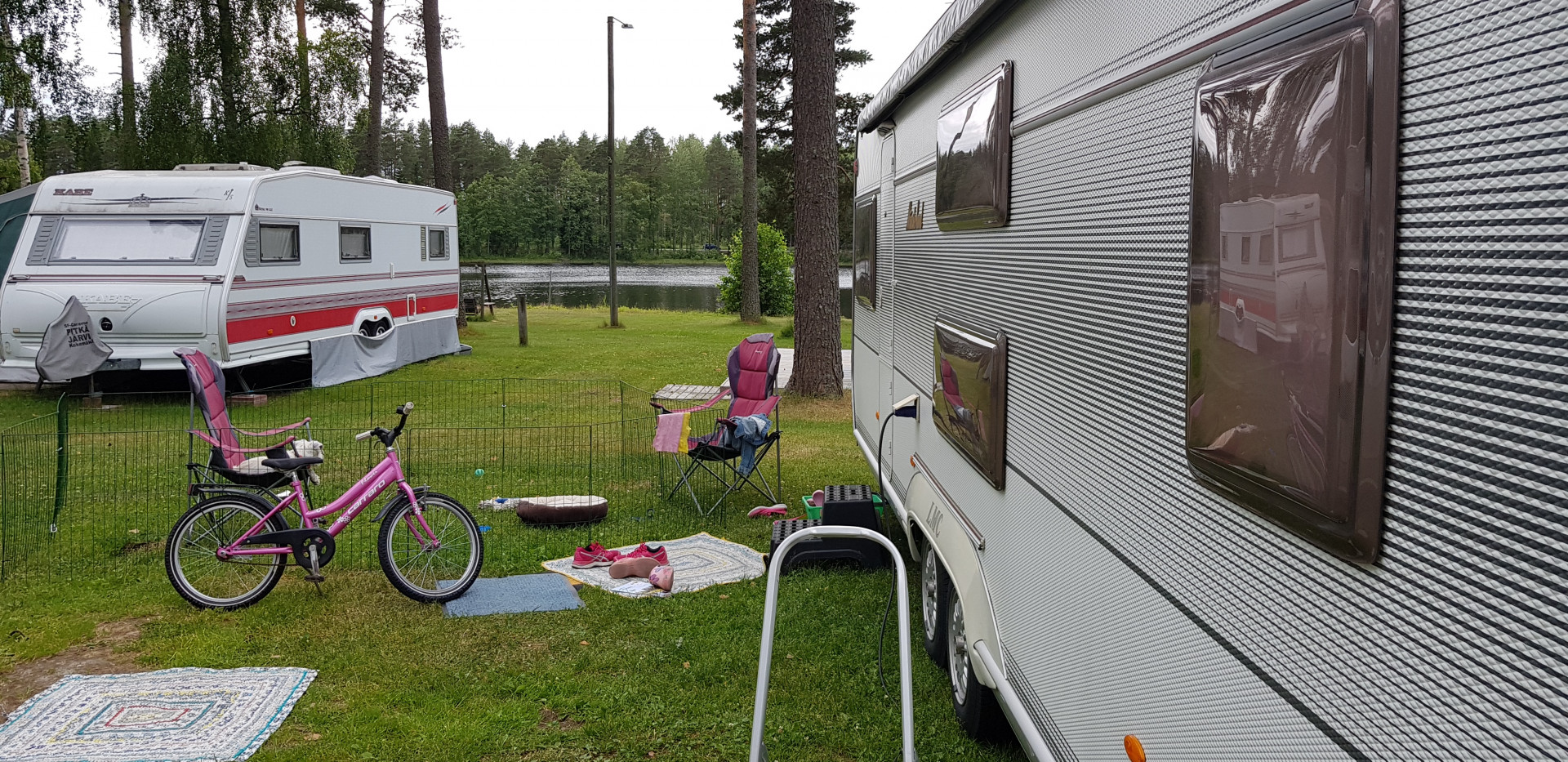 Juhannuksena launtaina tuonne leiriydyttiin ja pelko oli tilanpuutteesta joten iltapäivällä paikka otettiin vaikka iltasella tontille saavuttiin. Tuo sen takia että nuorimmaisella (tyttö 10v) on jalka kipsissä varpaista polveen saakka ja haluttiin että paikkassa sosiaalitilat olisivat mahdollisimman pienen kävelykeppien kulkemisen matkan päässä. Todella hyvin tuo onnistui.