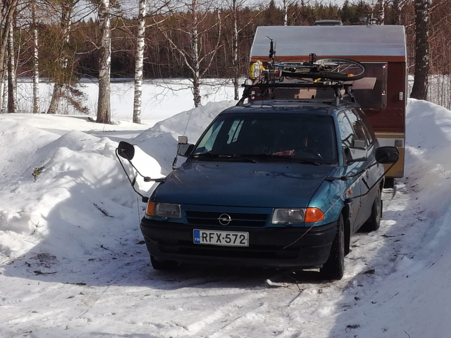 Mökille pääsiäisen viettoon Etelä-Pohjanmaalle. Siihen talviloma jatkumona. Karavaanarista jäljellä vaimon wanha vaunu ja henkilökohtainen intressi. Aika aikaansa kutakin. Hyvää pääsiäisen aikaa itse kullekin.