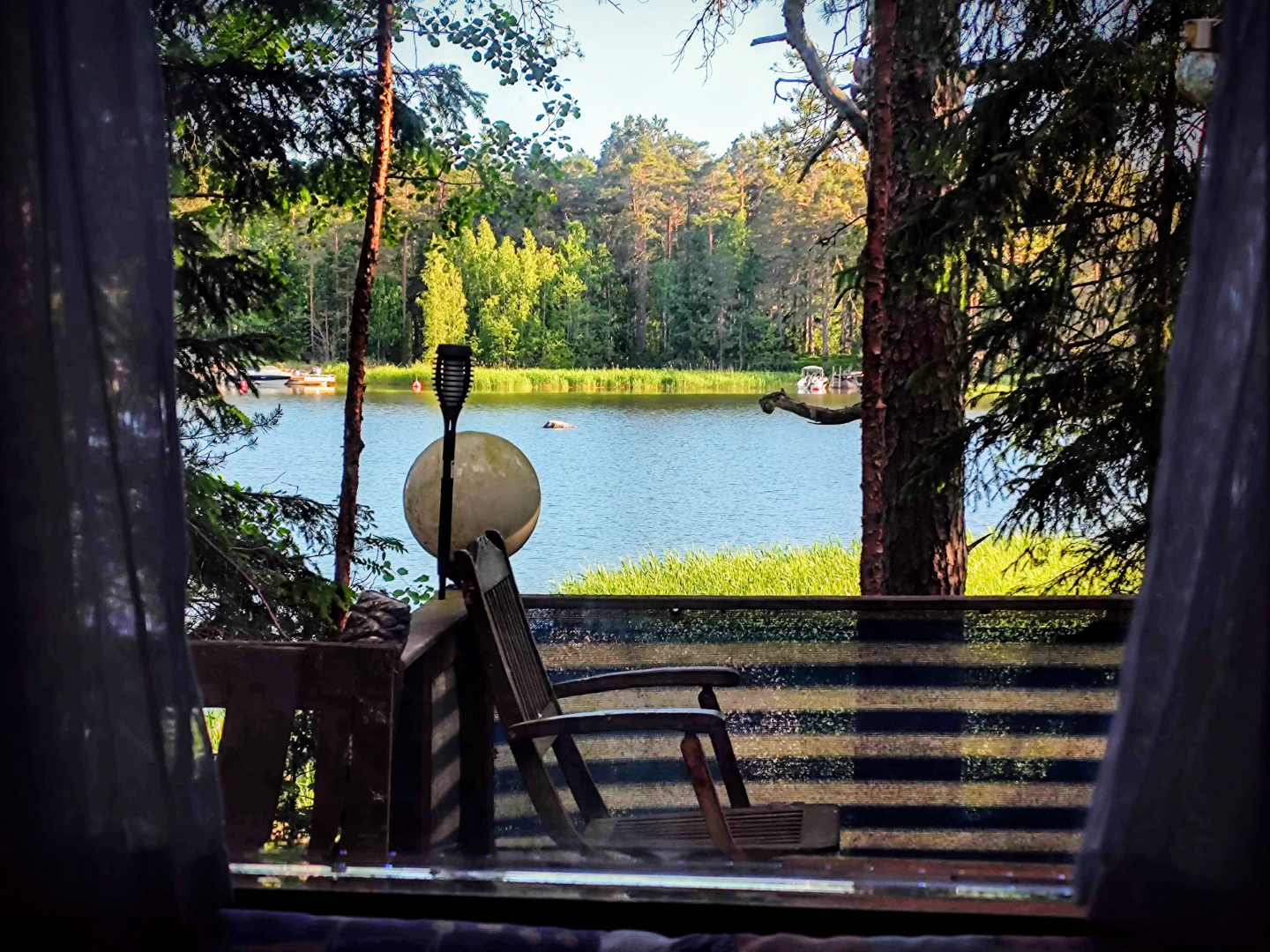 Vaunulla. Ei viitti istua ulkona terassilla, kun hyttysiä. Huomenna sataa...   :-\