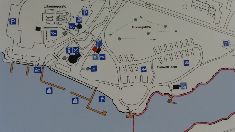Tällä matkailualueella sijaitsee myös ilmainen lastenliikennepuist o ![]() ![]() Ja vierasvene satama ![]() Lisäksi alueella on täydenpalvelun ravintola jossa näyttää olevan lauantaina tanssit ![]() ![]() ![]() Ja mikä parasta yön hinta koko sakilta sähköineen on 19.30e ![]() Tämä taajamassa sijaitsevan matkailualueen kartta näyttää tältä ![]() Paljon suomessa vielä nähtävää. Liekö vaakunan värit tuossa tolpassa. ![]() Ei harmainta aavistusta mutta tuntuis olevan käynnin arvoinen paikka!