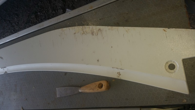 Vähän jäänyt huonolle huomiolle tämä projektin päivittely. Mut peräosan mutkalla ollut pelti leikattu pois, liimattu uusi tilalle sekä nurkkalistan otin irti ja oikaisin, tuli aika hyvä niin asensin sen jo paikalleen. Takapään nurkkamuovissa oli pari halkeamaa ne liimasin. En viitsinyt ostaa uutta koska nuo hobbyn muoviosat on ihan paperia eli se uusikin voi olla rikki kun ensimmäiseen oksaan osuu. Huomenna pitäisi myydä soliferi joten tämä olisi saatava torstaina katsastuskonttorill e ja siitä sitten kausipaikalle illalla kun yöksi pitää töihin ja palaan työreissulta vasta la ja sunnuntaina olis isäntävelvoite kausipaikalla. Ei viitsisi teltassakaan nukkua ;D Josko sitä ehtisi sitten vähän lisäillä kuviakin projektin kulusta