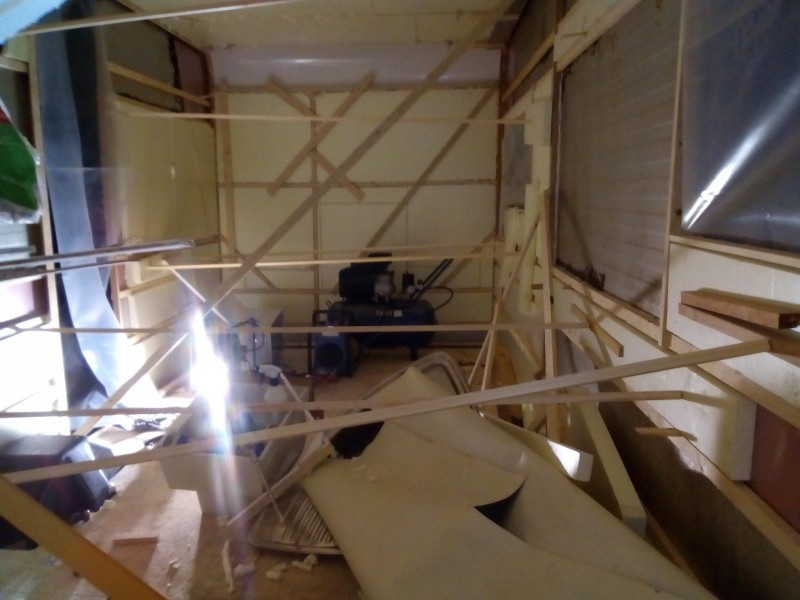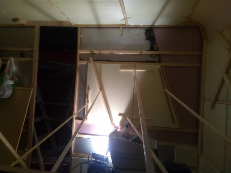 Liimaa koko matkan seinään lattiaan ja kattoon. Sit vielä Ruuvit kaikkiin runkopuihin mitkä tielle osuu. Ja niitä osuu ihan riittävästä kun itse saanut rungon ja sisustan miettiä