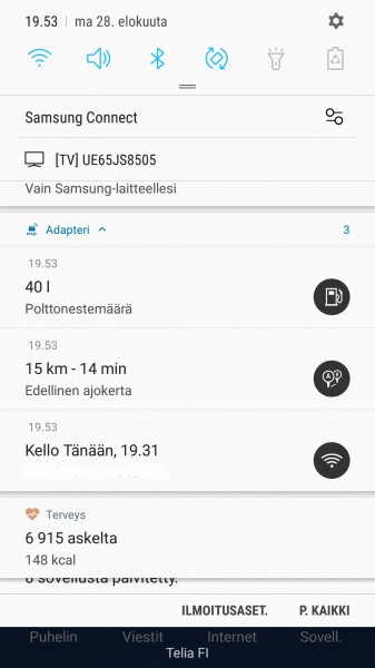 Ja puhelimeen en ole koskenut, ainoastaan Bluetooth päällä.
